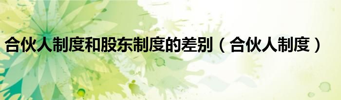 合伙人制度和股东制度的差别(合伙人制度)