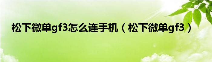 大家好,来宝来为大家解答以下问题,松下微单gf3怎么连手机,松下微单gf3很多人还不知道,今天让我们一起来看看吧!