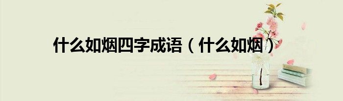 大家好,小晋来为大家解答以下问题,关于什么如烟四字成语,什么如烟很多人还不知道,今天让我们一起来看看吧!