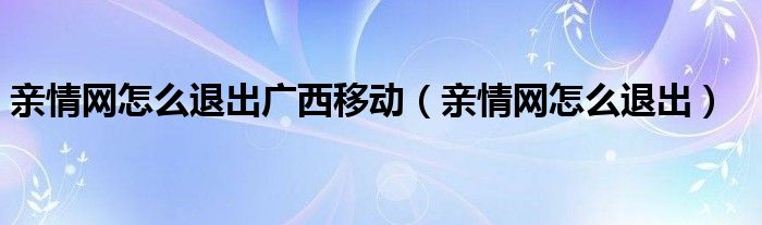 亲情网怎么退出广西移动(亲情网怎么退出)