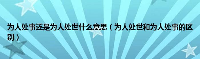 关于为人处事还是为人处世什么意思,为人处世和为人处事的区别这个很多人还不知道,今天菲菲来为大家解答以上的问题,现在让我们一起来看看吧!