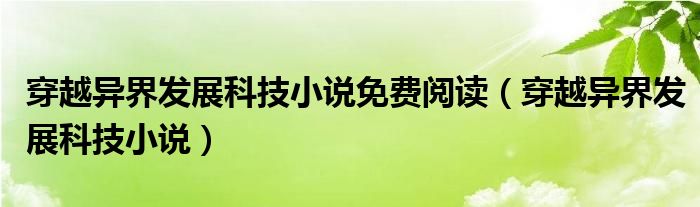 大家好,小晋来为大家解答以下问题,关于穿越异界发展科技小说免费阅读,穿越异界发展科技小说很多人还不知道,今天让我们一起来看看吧!