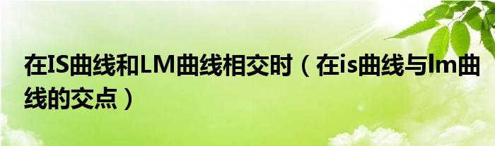 在IS曲线和LM曲线相交时(在is曲线与lm曲线的交点)