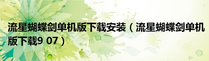 流星蝴蝶剑单机版下载安装(流星蝴蝶剑单机版下载907)