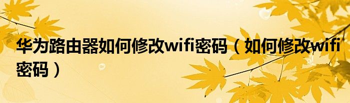华为路由器如何修改wifi密码(如何修改wifi密码)