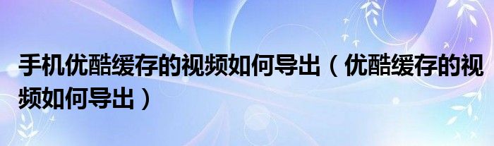 大家好,小晋来为大家解答以下问题,关于手机优酷缓存的视频如何导出,优酷缓存的视频如何导出很多人还不知道,今天让我们一起来看看吧!