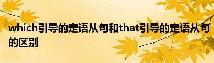 关于which引导的定语从句和that引导的定语从句的区别这个很多人还不知道,今天菲菲来为大家解答以上的问题,现在让我们一起来看看吧!