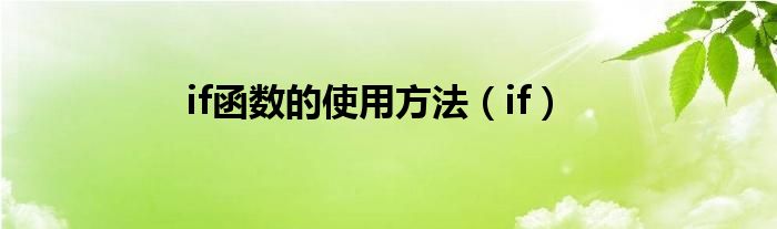 大家好,来宝来为大家解答以下问题,if函数的使用方法,if很多人还不知道,今天让我们一起来看看吧!