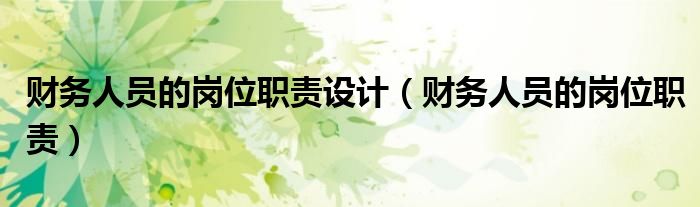 关于财务人员的岗位职责设计,财务人员的岗位职责这个很多人还不知道,今天菲菲来为大家解答以上的问题,现在让我们一起来看看吧!