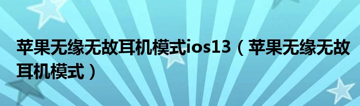 苹果无缘无故耳机模式ios13(苹果无缘无故耳机模式)