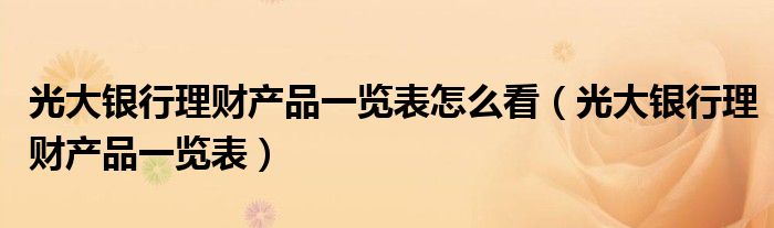 光大银行理财产品一览表怎么看(光大银行理财产品一览表)