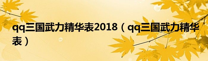 关于qq三国武力精华表2018,qq三国武力精华表这个很多人还不知道,今天菲菲来为大家解答以上的问题,现在让我们一起来看看吧!