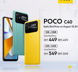 就在几个小时前,POCOMalaysia刚刚推出了两款即将抵达马来西亚的新手机。如果你去Shopee上的在线商店,POCOC40和POCOM45G将于2022年8月18日发布,早鸟价活动将持续到24日。起始价为RM499。