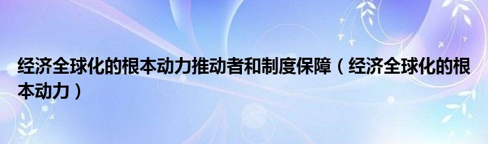 经济全球化的根本动力推动者和制度保障(经济全球化的根本动力)