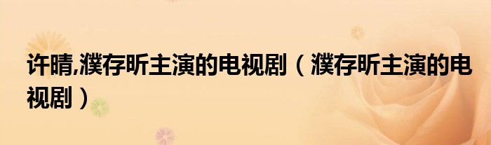 关于许晴,濮存昕主演的电视剧,濮存昕主演的电视剧这个很多人还不知道,今天菲菲来为大家解答以上的问题,现在让我们一起来看看吧!