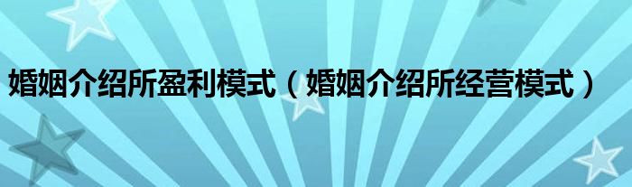 关于婚姻介绍所盈利模式,婚姻介绍所经营模式这个很多人还不知道,今天菲菲来为大家解答以上的问题,现在让我们一起来看看吧!