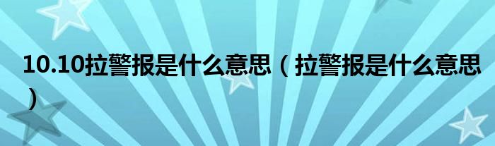 大家好,小晋来为大家解答以下问题,关于10.10拉警报是什么意思,拉警报是什么意思很多人还不知道,今天让我们一起来看看吧!