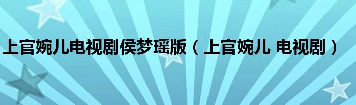 上官婉儿电视剧侯梦瑶版,上官婉儿 电视剧这个很多人还不知道,小飞来为大家解答以上的问题。现在让我们一起来看看吧!