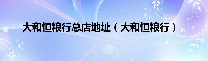 大和恒粮行总店地址,大和恒粮行这个很多人还不知道,小飞来为大家解答以上的问题。现在让我们一起来看看吧!