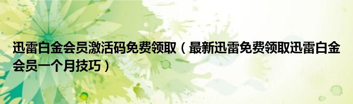 大家好,今天小悦来为大家解答以上问题。迅雷白金会员激活码免费领取,最新迅雷免费领取迅雷白金会员一个月技巧很多人还不知道,现在让我们一起来看看吧!