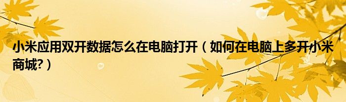 小米应用双开数据怎么在电脑打开(如何在电脑上多开小米商城?)