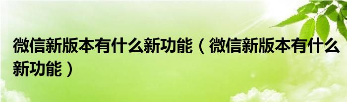 微信新版本有什么新功能(微信新版本有什么新功能)