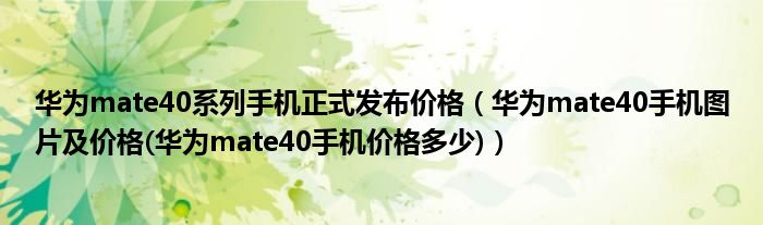 大家好,小常来为大家解答以上问题。华为mate40系列手机正式发布价格,华为mate40手机图片及价格(华为mate40手机价格多少)很多人还不知道,现在让我们一起来看看吧!