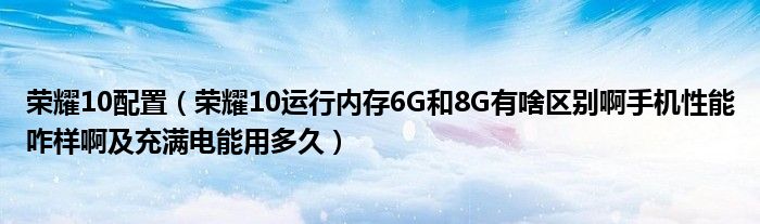 1,荣耀10运行内存6G和8G有啥区别啊手机性能咋样啊 充满电能用多久 :只是RAM大了2G而已,大RAM对于高配置要求的游戏来说是战未来。当前对于手机来说,很少有软件运行能塞满6G,等能塞到8GRAM的时候,CPU性能也就基本落伍了, 所以,到了6G这个级别,RAM容量不用太在意了,不实用了。跑大逃杀是没问题的,现在的手机都支持这游戏的,何况是旗舰机器