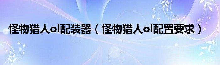 怪物猎人ol配装器(怪物猎人ol配置要求)