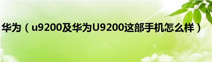 大家好,小常来为大家解答以上问题。华为,u9200及华为U9200这部手机怎么样很多人还不知道,现在让我们一起来看看吧!