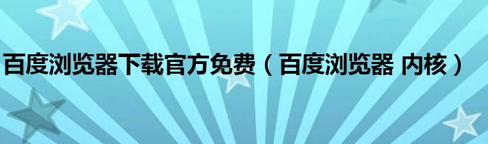 百度浏览器下载官方免费(百度浏览器 内核)