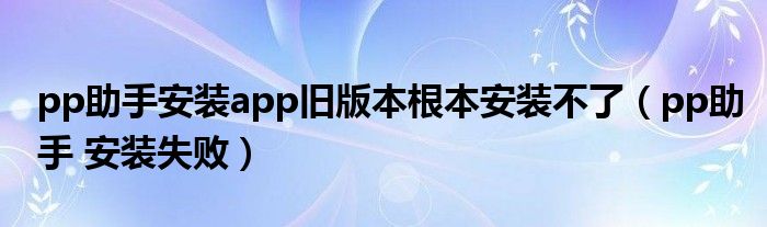 pp助手安装app旧版本根本安装不了(pp助手 安装失败)