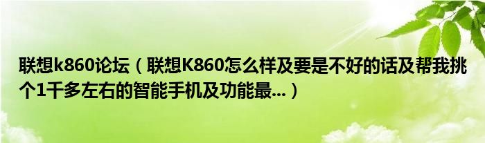 联想k860论坛(联想K860怎么样及要是不好的话及帮我挑个1千多左右的智能手机及功能最...)