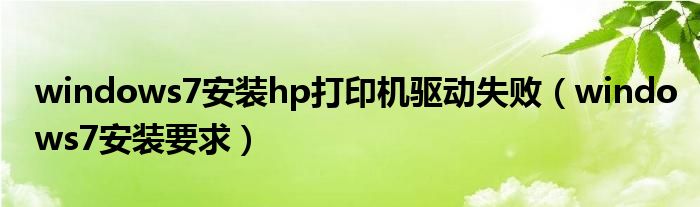 windows7安装hp打印机驱动失败(windows7安装要求)