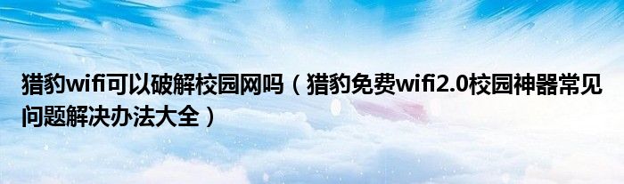 猎豹wifi可以破解校园网吗(猎豹免费wifi2.0校园神器常见问题解决办法大全...