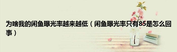 大家好,跳跳为你解答以上问题。为啥我的闲鱼曝光率越来越低,闲鱼曝光率只有85是怎么回事这个问题很多人还不知道,现在让我们一起来看看吧!