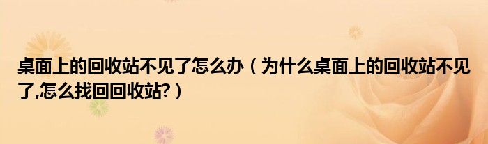 大家好,今天小悦来为大家解答以上问题。桌面上的回收站不见了怎么办,为什么桌面上的回收站不见了,怎么找回回收站?很多人还不知道,现在让我们一起来看看吧!