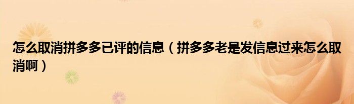大家好,跳跳为你解答以上问题。怎么取消拼多多已评的信息,拼多多老是发信息过来怎么取消啊这个问题很多人还不知道,现在让我们一起来看看吧!