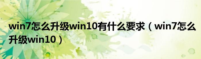win7怎么升级win10有什么要求(win7怎么升级win10)