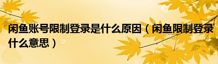 闲鱼账号限制登录是什么原因(闲鱼限制登录什么意思)