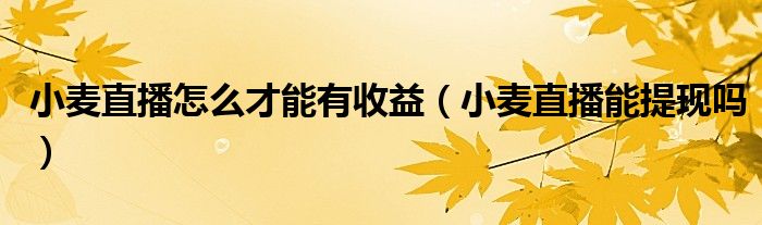 小麦直播怎么才能有收益(小麦直播能提现吗)