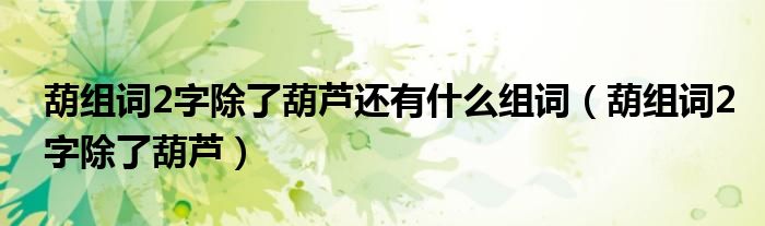 大家好,小晋来为大家解答以下问题,关于葫组词2字除了葫芦还有什么组词,葫组词2字除了葫芦很多人还不知道,今天让我们一起来看看吧!