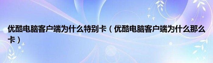 优酷电脑客户端为什么特别卡(优酷电脑客户端为什么那么卡)