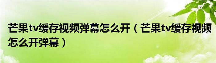 大家好,跳跳为你解答以上问题。芒果tv缓存视频弹幕怎么开,芒果tv缓存视频怎么开弹幕这个问题很多人还不知道,现在让我们一起来看看吧!