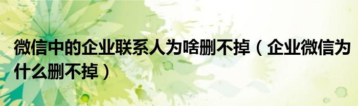 大家好,跳跳为你解答以上问题。微信中的企业联系人为啥删不掉,企业微信为什么删不掉这个问题很多人还不知道,现在让我们一起来看看吧!