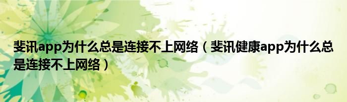 解答:1、斐讯健康app总是无法连接网络的原因及解决方法如下: