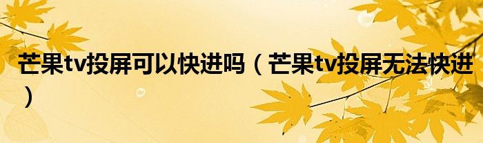 解答:1、芒果tv投影不能快进。目前芒果软件不支持快进投影,所以没有办法快进视频。