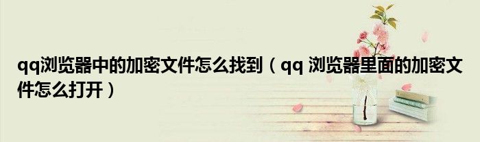 大家好,跳跳为你解答以上问题。qq浏览器中的加密文件怎么找到,qq 浏览器里面的加密文件怎么打开这个问题很多人还不知道,现在让我们一起来看看吧!