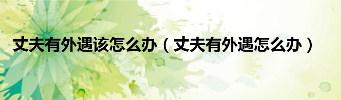 关于丈夫有外遇该怎么办,丈夫有外遇怎么办这个很多人还不知道,今天菲菲来为大家解答以上的问题,现在让我们一起来看看吧!
