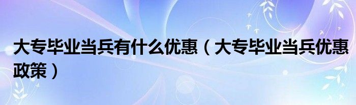 1、大学生参军的优惠政策意味着大学毕业生应该应征入伍服义务兵役。